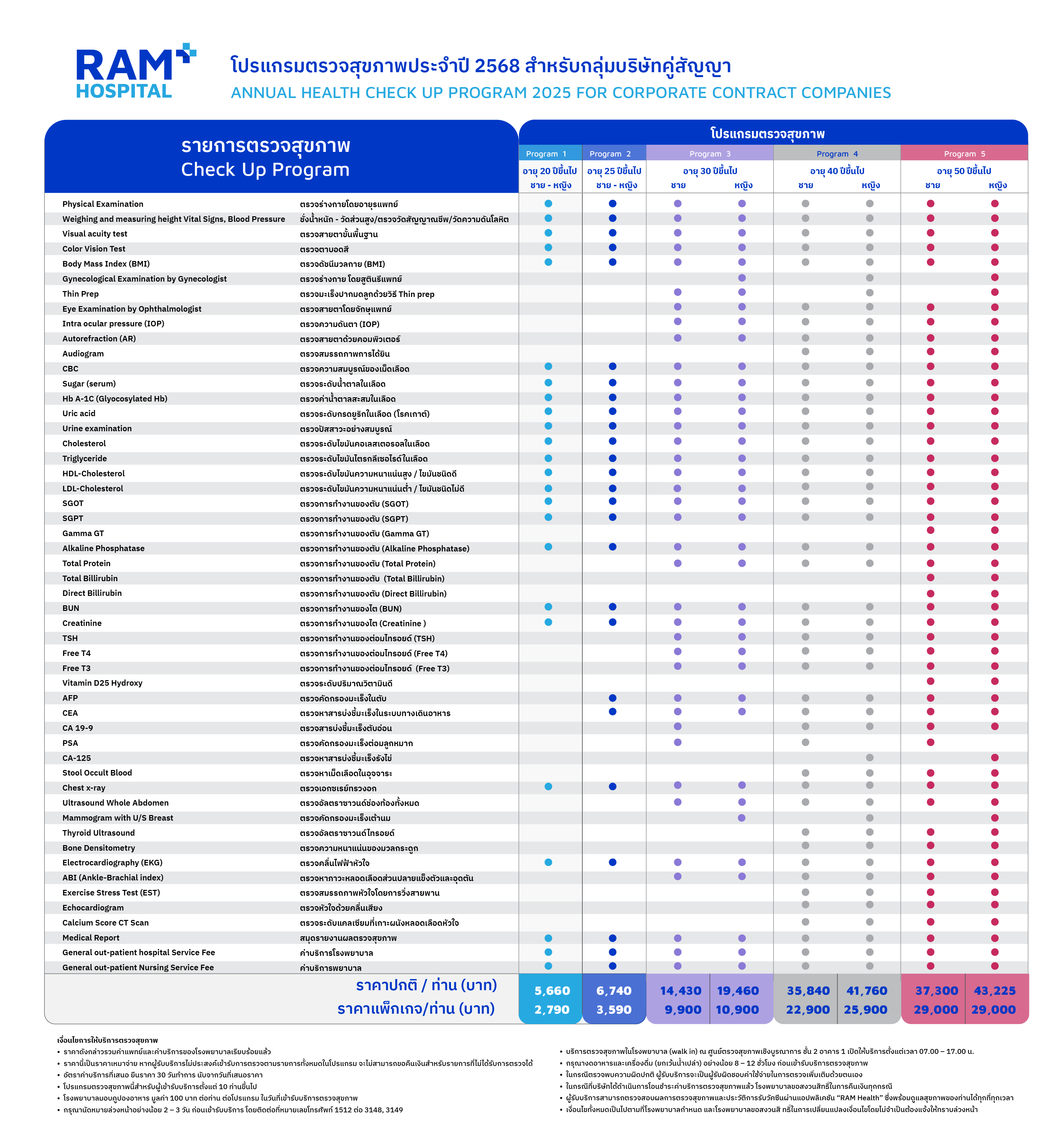 โปรแกรมตรวจสุขภาพบริษัทคู่สัญญา