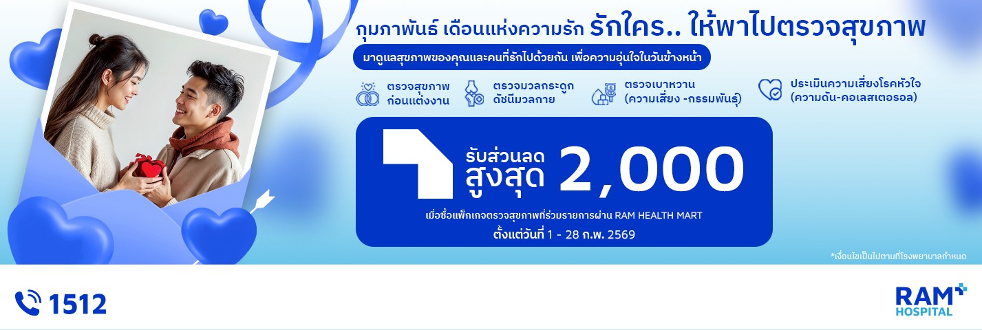 "กุมภาพันธ์" เดือนแห่งความรัก! ลดสูงสุด 2,000 บาท! เมื่อสั่งซื้อแพ็กเกจตรวจสุขภาพที่ร่วมรายการ รับส่วนลดเลย!