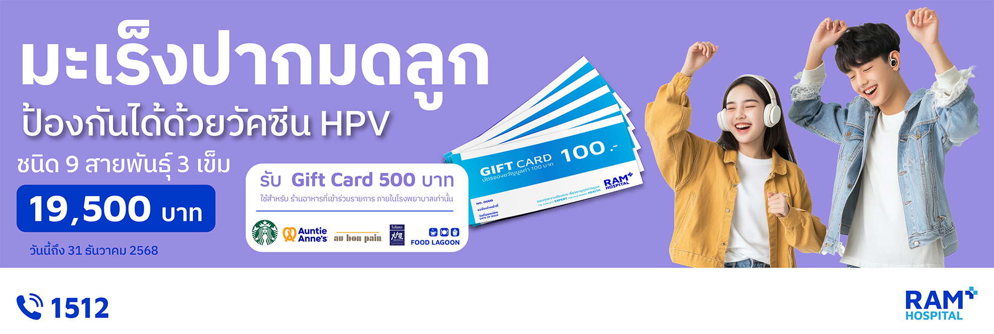 เฟส 2 รับสิทธิ์! Gift Card 500 บาท หลังซื้อแพ็กเกจวัคซีนป้องกันมะเร็งปากมดลูก