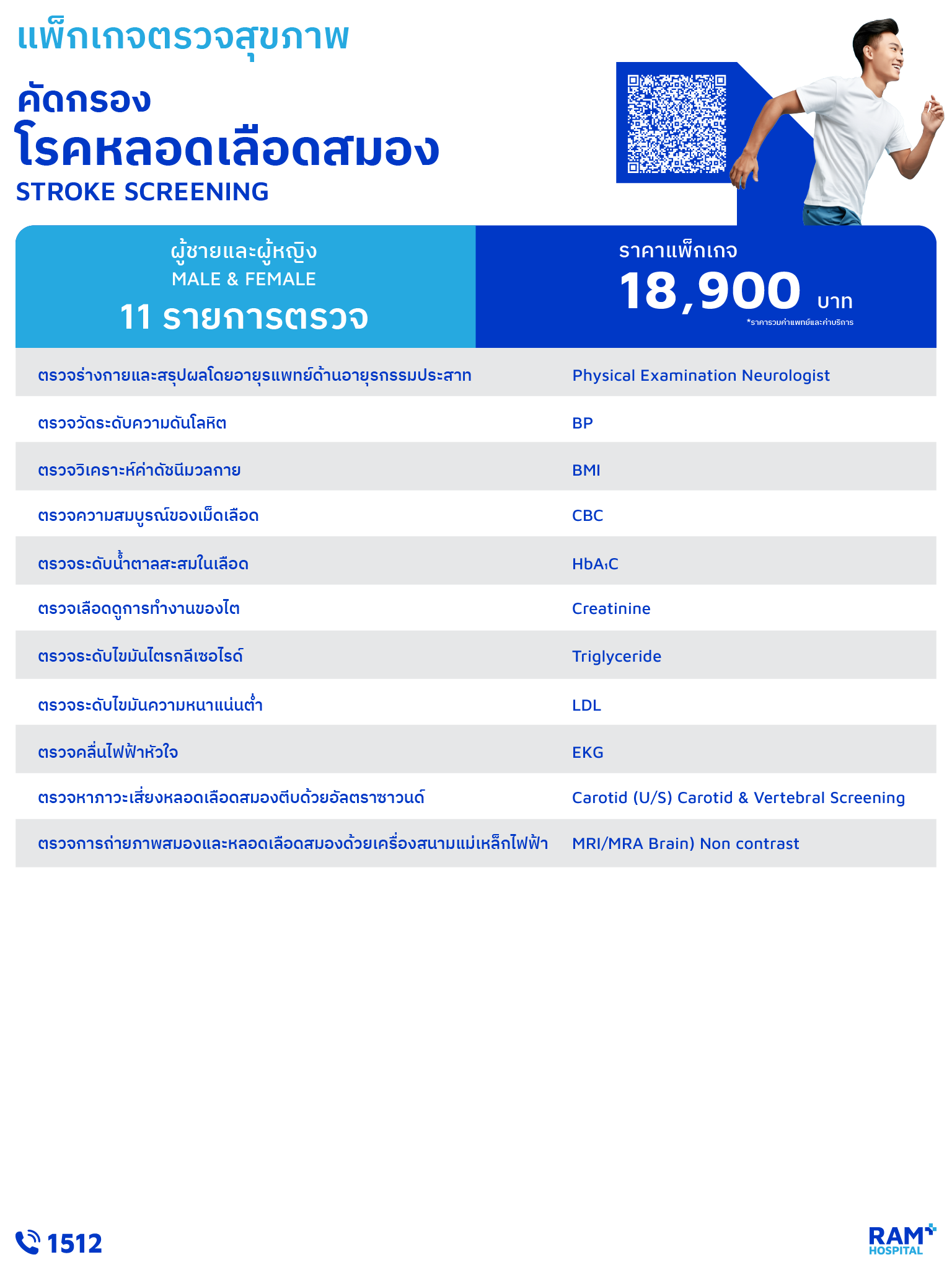 เข้าใจ 'โรคหลอดเลือดสมอง' ภัยเงียบที่หากไม่ตรวจแต่เนิ่นอาจสายเกินแก้ รู้เร็ว รักษาไว ลดโอกาสเสี่ยงด้วยโปรแกรมตรวจคัดกรองโรคหลอดเลือดสมอง (Stroke Screening) โปรแกรมการตรวจสุขภาพนี้พร้อมช่วยคุณวิเคราะห์ผลตรวจได้ละเอียดและแม่นยำ เราพร้อมดูแลคุณด้วยทีมแพทย์ด้านประสาทวิทยาคอยดูแลสมองของคุณให้ห่างไกลจากความเสี่อม