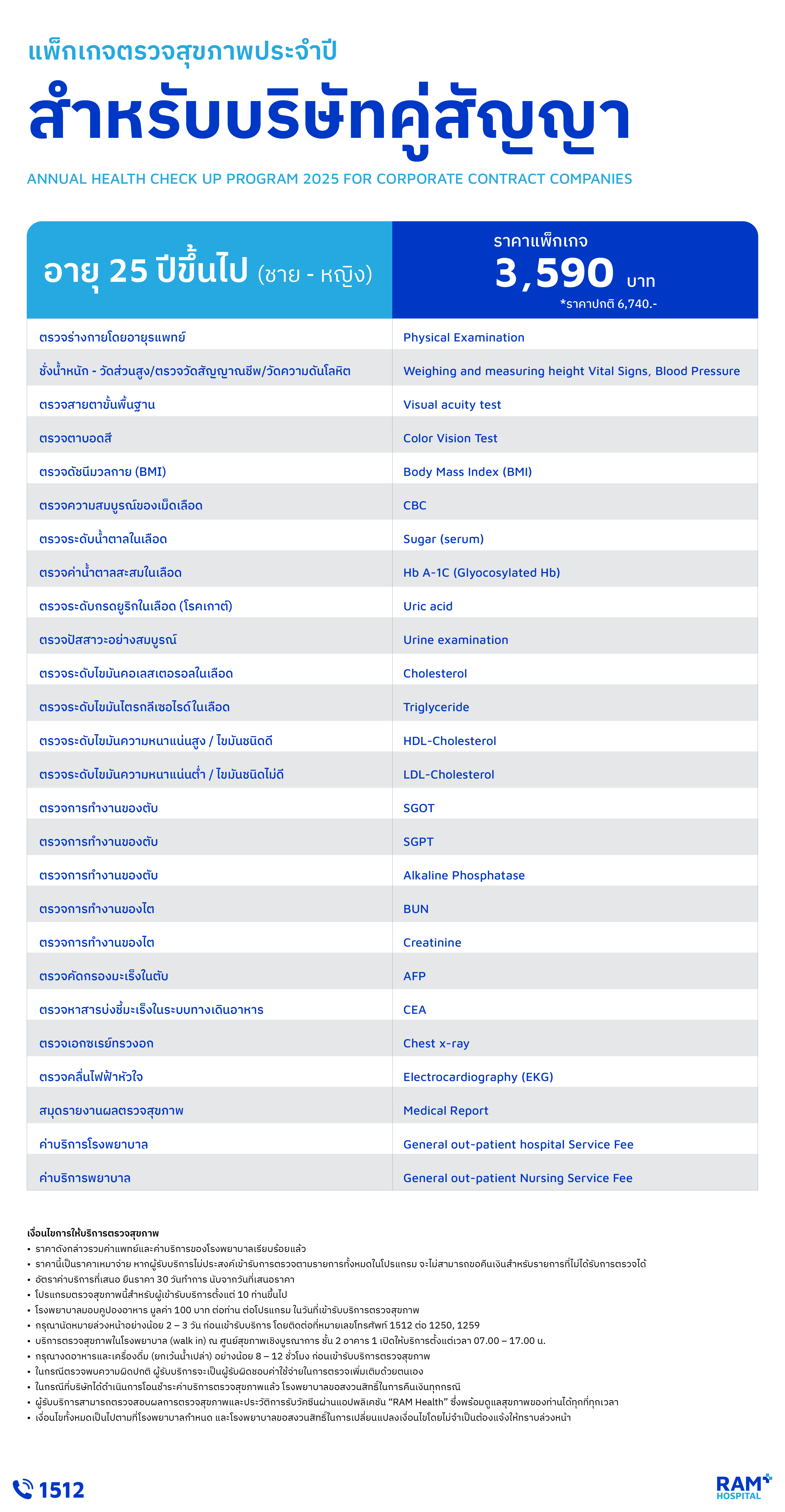โปรแกรมตรวจสุขภาพสำหรับบริษัทคู่สัญญา (ชาย/หญิง อายุ 25 ปีขึ้นไป)