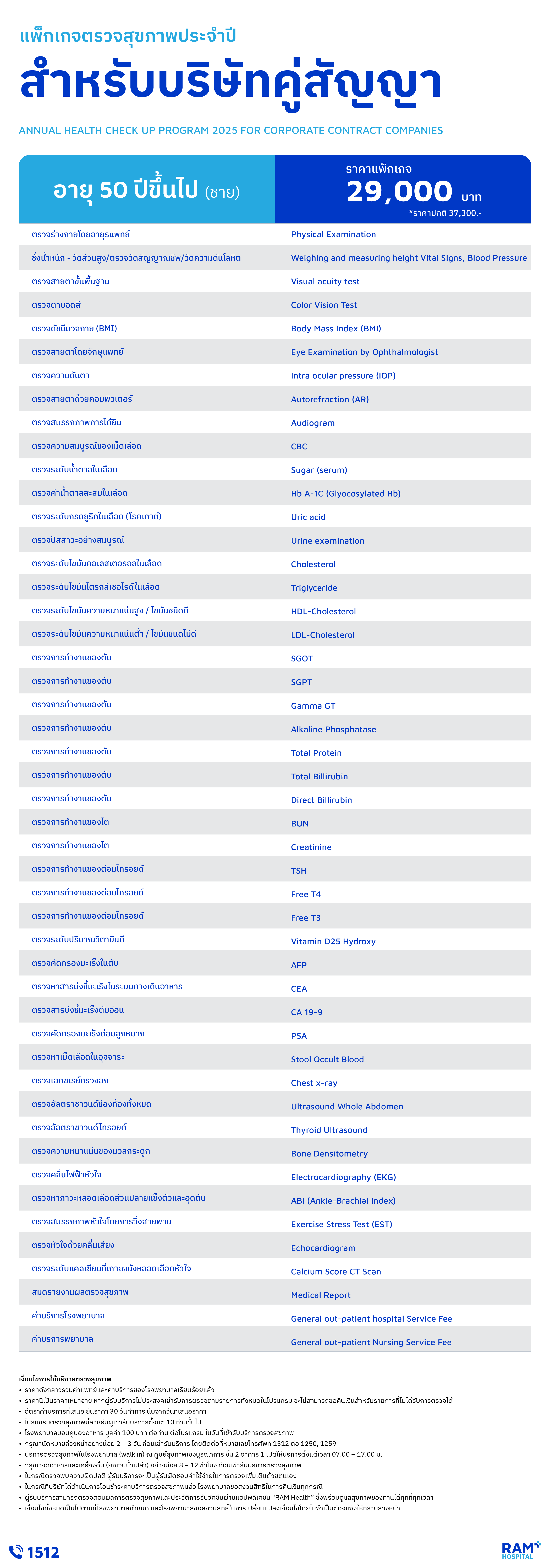 โปรแกรมตรวจสุขภาพสำหรับบริษัทคู่สัญญา (ผู้ชาย อายุ50 ปีขึ้นไป)