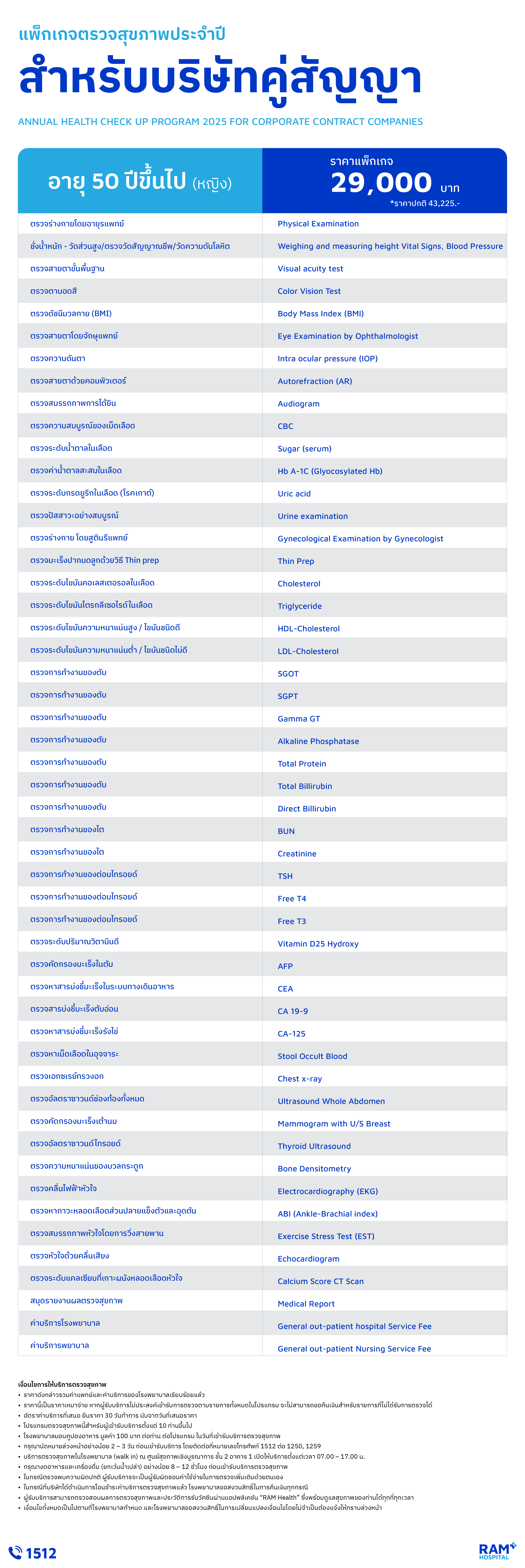 โปรแกรมตรวจสุขภาพสำหรับบริษัทคู่สัญญา (ผู้หญิง อายุ50 ปีขึ้นไป)