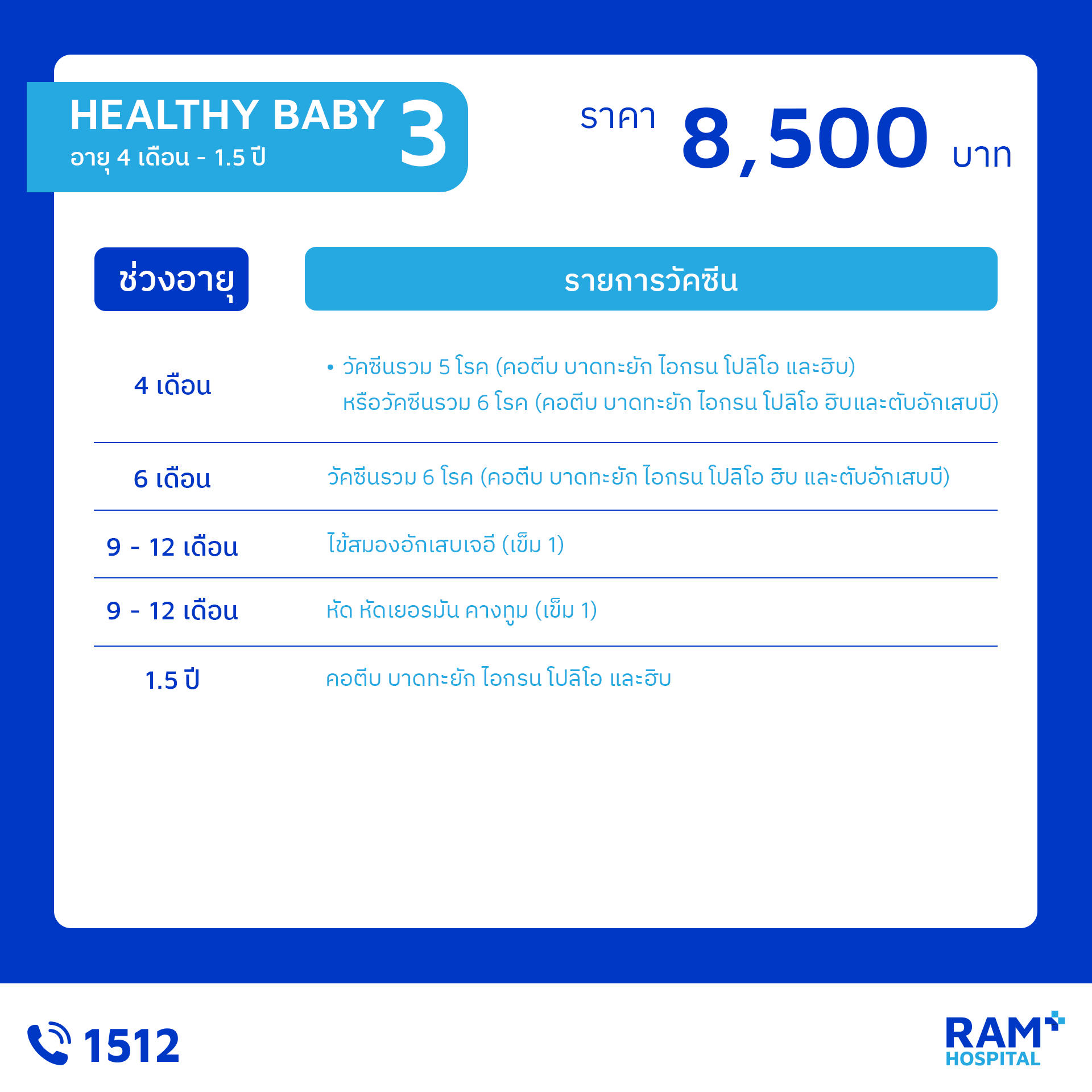 แพ็กเกจวัคซีน Healthy Baby 3 (4M-1.5Y) ราคา 8,500 บาท